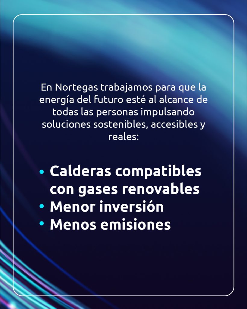 En Nortegas creemos que la transición energética no puede ser un lujo o algo que suponga mayor esfuerzo a las familias. Por eso impulsamos soluciones eficientes, sostenibles y asequibles, como las calderas compatibles con gases renovables, que reducen emisiones y no requieren de grandes inversiones.